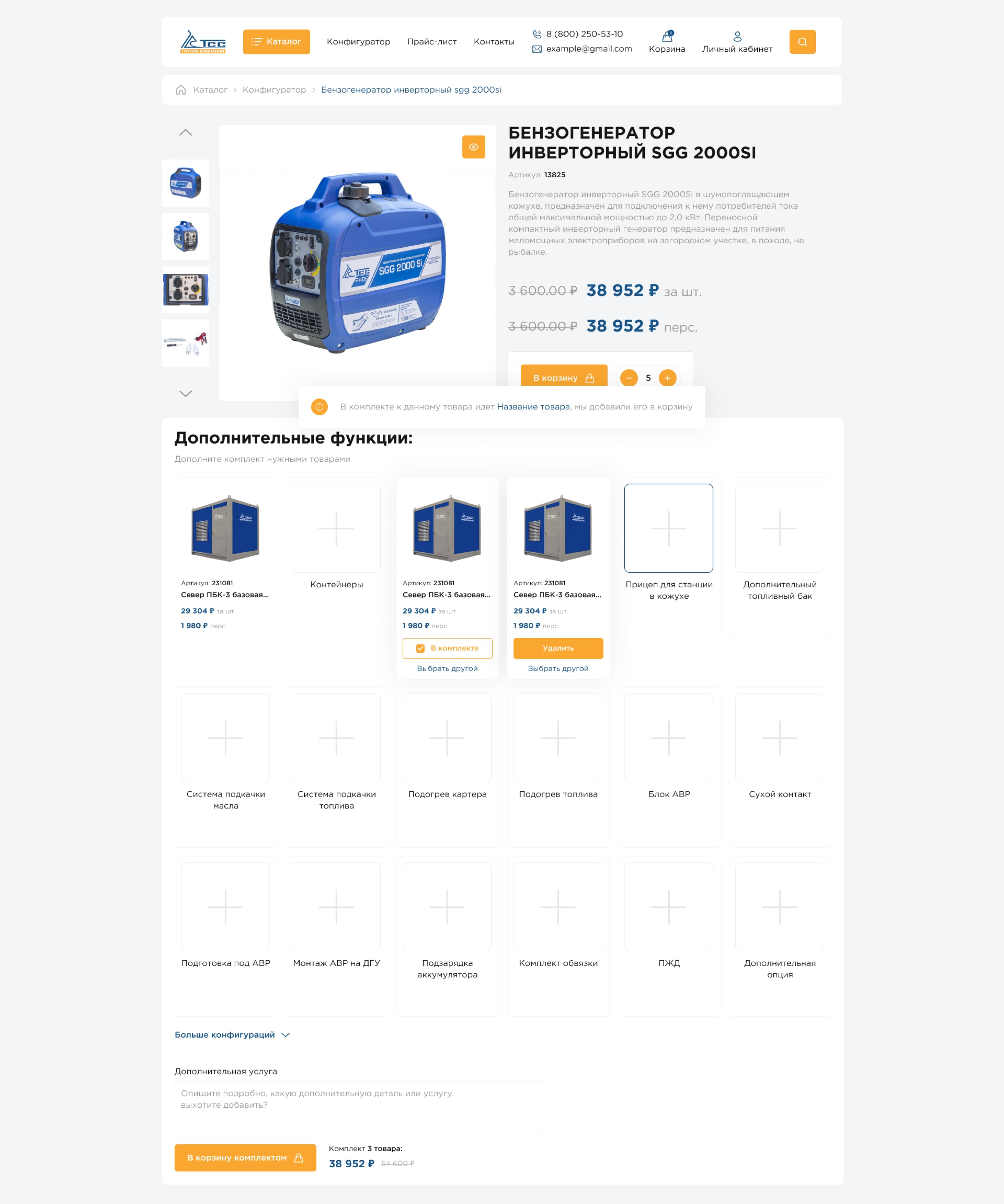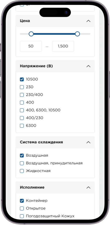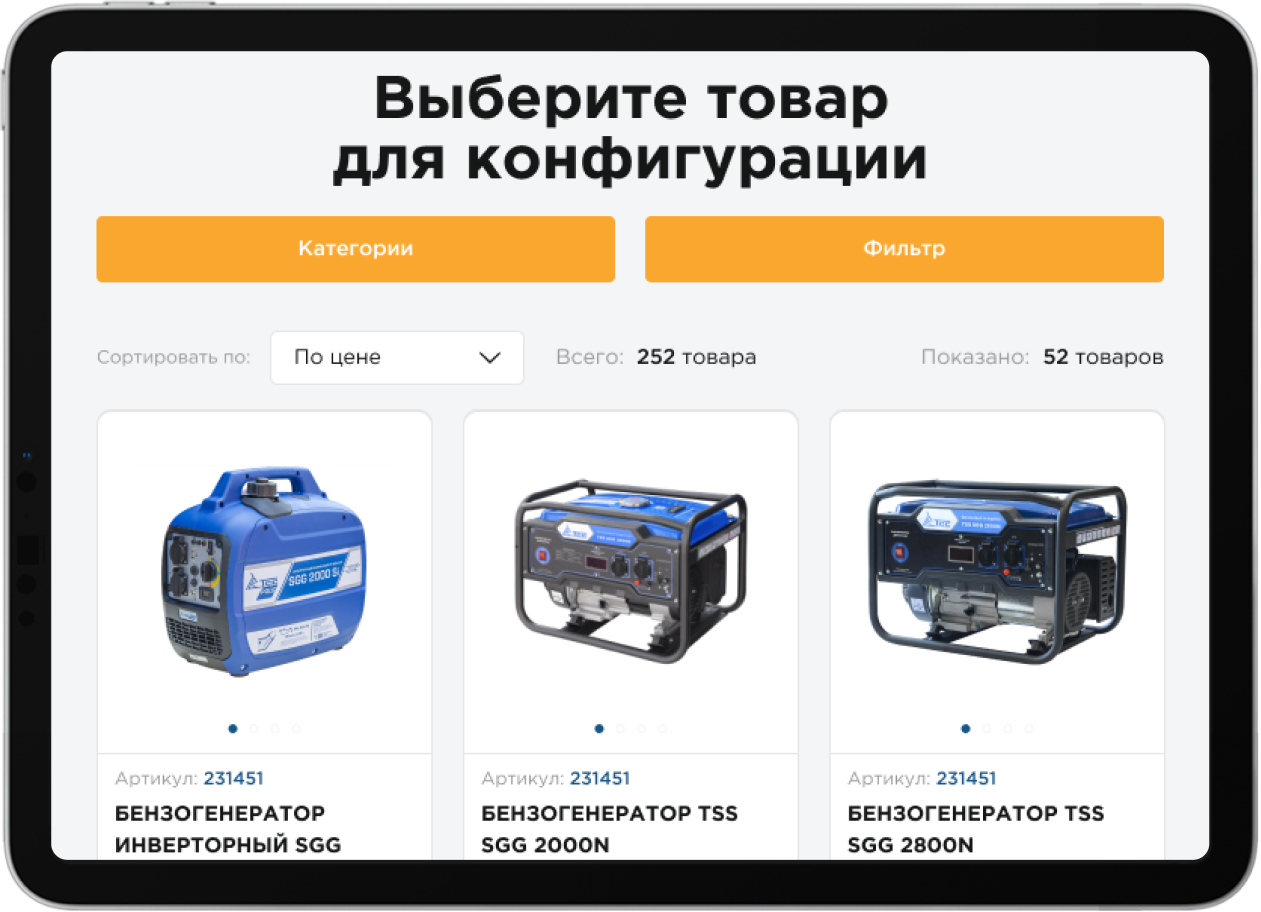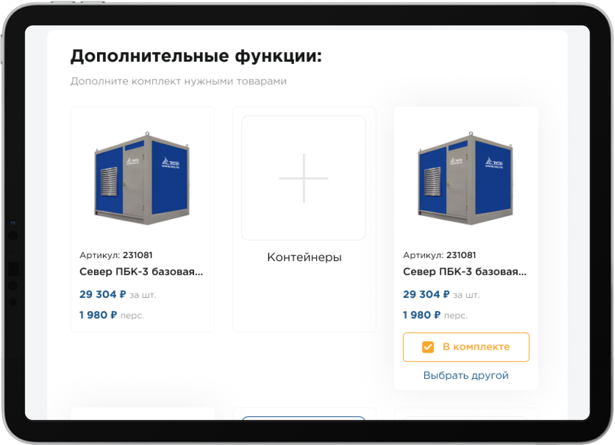 У заказчика уже была работающая логика конфигуратора и каталог товаров на стороне 1С. Задача команды разработки заключалась в переносе этой логики на портал. Мы разработали алгоритм подбора конфигураций. Это позволило нам точно воссоздать уже существующую систему на новом ресурсе.