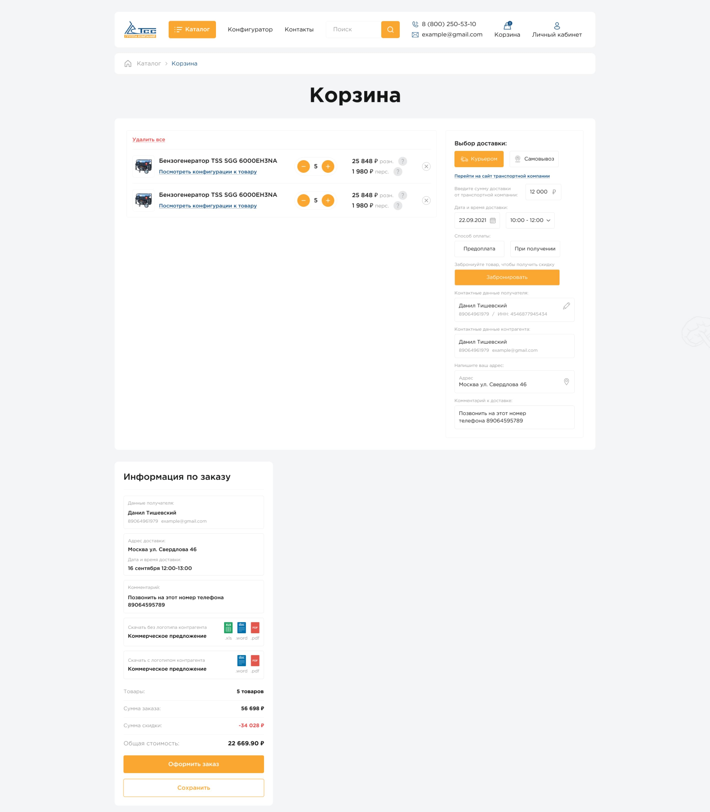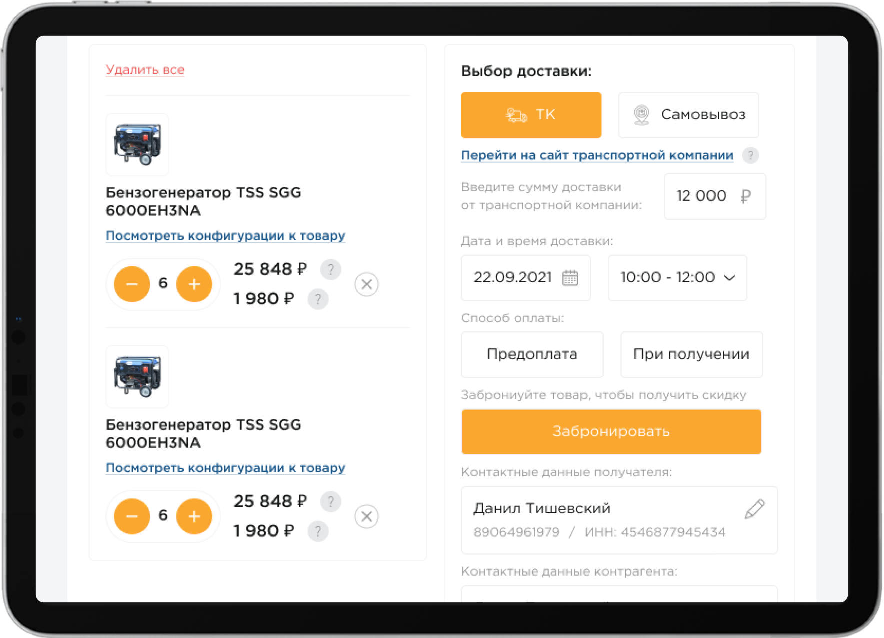 Формирование конфигуратора было сложным процессом из-за того, что мы создавали товар, который для пользователя представляется как один товар в корзине. Когда пользователь оформляет заказ, товар разделяется на составляющие и специальным образом выгружается в 1С как несколько разных позиций.